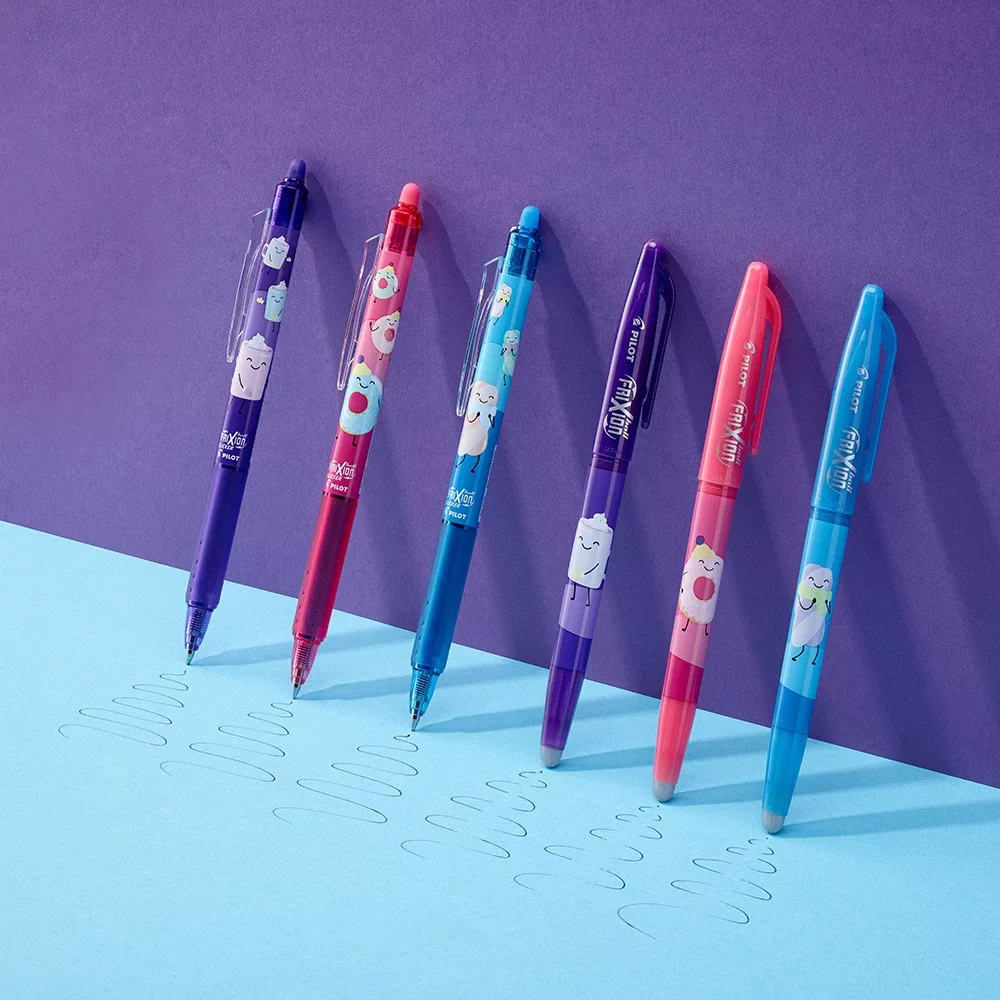 Örömmel mutatjuk be legújabb limitált kiadású termékünket a Sweet Paradise kollekciót, amely a népszerű Pilot FriXion radírozható tollak új, ellenálhatatlanul bájos változata. A kollekció 6 egyedi dizájnt tartalmaz, amelyek mindegyike a cukormázas fantázia világába repít. A Dizzy Donut (Szédelgő Fánk), Choco Hug (Csokis Ölelés), és Fluffy Mallow (Pihe-Puha Mályvacukor) karakterek garantáltan mosolyt csalnak minden korosztály arcára, miközben megőrzik a FriXion technológiától megszokott megbízhatóságot, és kreatív szabadságot.