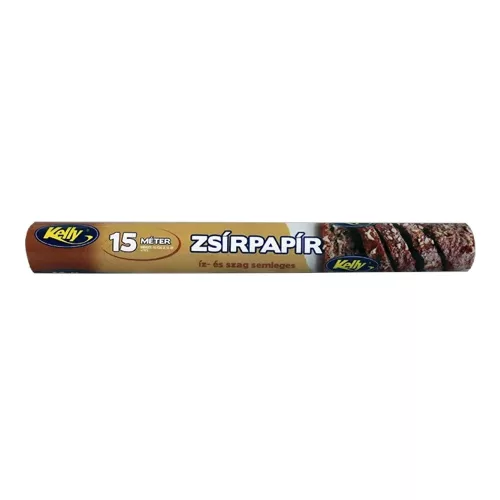 A Kelly sütőpapír pergamenpótló alappapírból készül, melynek legfontosabb tulajdonsága a nagyfokú hőállóság. Abszolút íz-,és szagsemleges, ezáltal semmiféle formában nem befolyásolja a segítségével készített élelmiszerek ízét és állagát. Használatával könnyebbé válik a sütő-formák tisztán tartása. 15 méteres kiszerelésben kapható.
