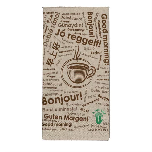 Szalvéta 1 rétegű 1/8 hajtás lapméret: 32 x 32 cm 720 lap/doboz Lady Gastro Kávé "Jó reggelt!"