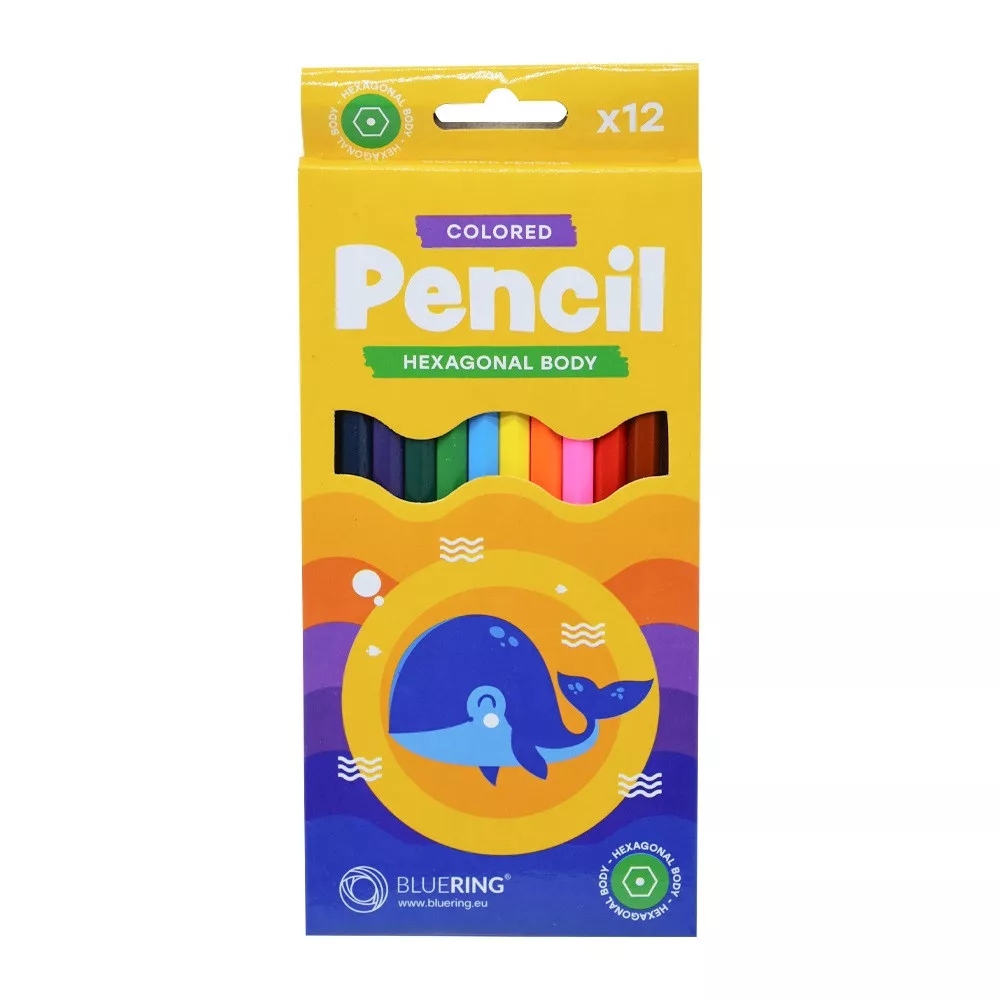 Színes ceruza készlet, hatszögletű Bluering® 12 klf. szín