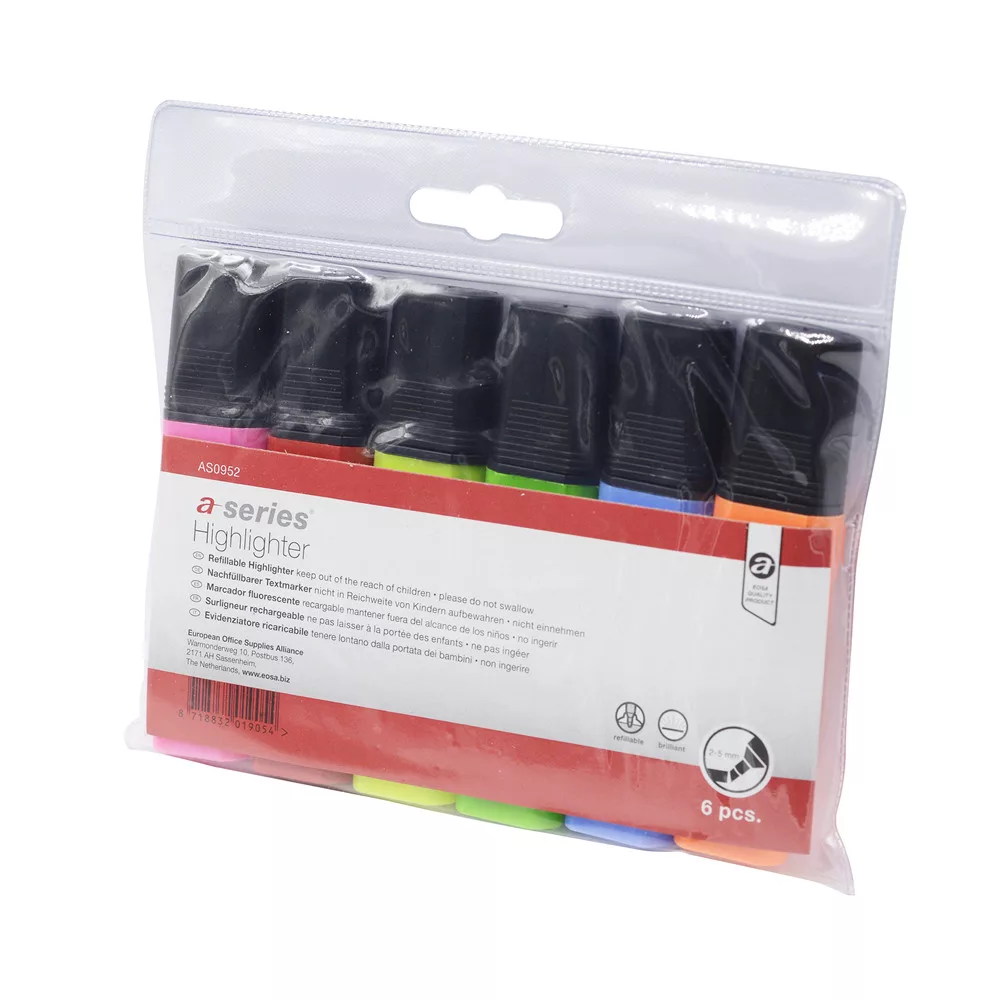 Szövegkiemelő 1-5mm, vágott hegyű, lapos test, A-Series 6-os készlet