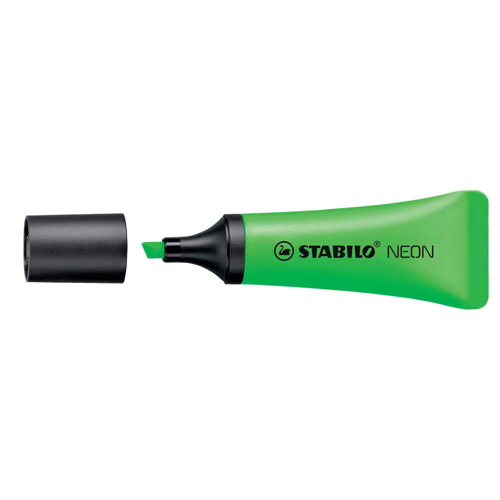 A stílusos megjelenésű STABILO NEON szövegkiemelő egyedi, tubus formájával, puha fogófelületének köszönhetően különösen kényelmes kézbefogni. Természetesen a megszokott STABILO minőségben. A STABILO kiszáradás elleni technológiájának köszönhetően a STABILO NEON akár 4 óráig is kupak nélkül maradhat anélkül, hogy kiszáradna. 2 vonalvastagság: 2 and 5 mm – ideális különböző betűméretű szövegek kiemeléséhez.10db/dob Katalóguskód: 34000