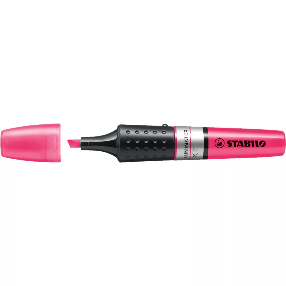 A STABILO LUMINATOR szövegkiemelő díjnyertes megjelenése megkülönbözteti minden más szövegkiemelőtől. A tintaszint jelző lehetővé teszi a tintamennyiség folyamatos nyomon követését. A hagyományos szövegkiemelőkénél nagyobb tintatartály az akár 500 m hosszú, zavartalan kiemelésért. A STABILO kiszáradás elleni technológiája akár 4 óra kiszáradás elleni védelmet biztosít. 2 vonalvastagság: 2 mm és 5 mm. Katalóguskód: 28549
