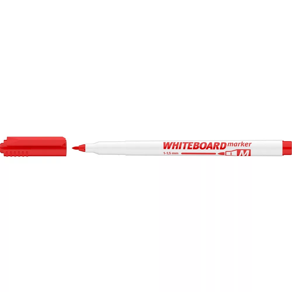Whiteboard marker, kiszerelés: 40 db/dob írásvastagság 1 - 1.5 mm, írás színe PIROS, test színe fehér Fehér táblára való írásra, rajzolásra alkalmas marker, az írás szárazon letörölhető. Katalóguskód: 1304