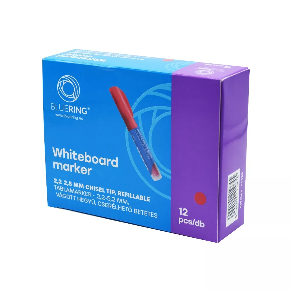 Vágotthegyű, vízbázisú táblamarker. A folyadéktartálynak köszönhetően folyamatos a tinta áramlás és soha nem szárad ki. Használat előtt 30-40 másodpercig tolja befelé a marker hegyét, amíg a hegy át nem színeződik teljesen. A betét cseréjekor a markert tartsa függőleges helyzetben, hegyével felfelé. Hozzávaló betét: 50692, Katalóguskód: 50688