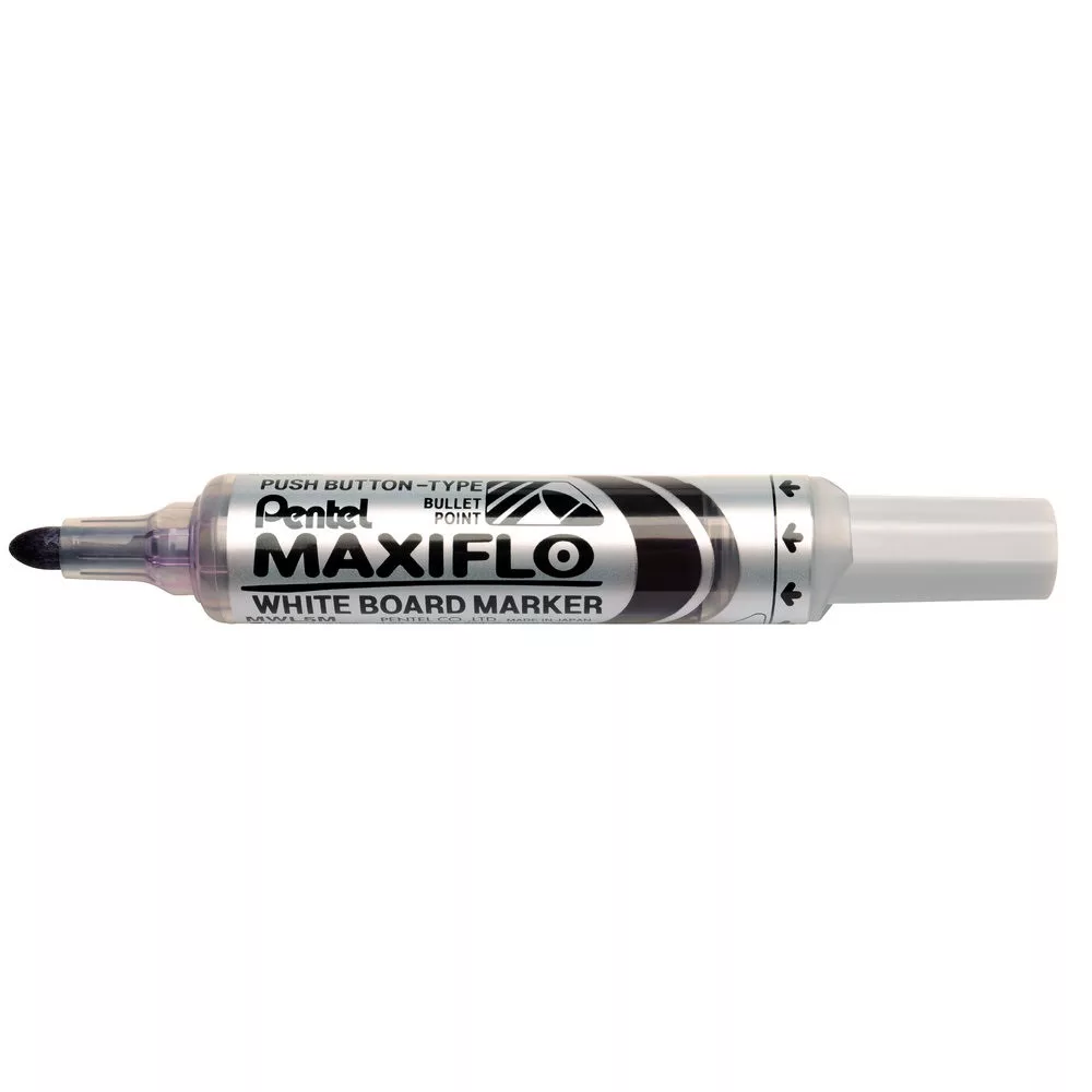 Professzionális társ a konferenciateremben, tanteremben. A Pentel Maxiflo táblafilccel nem lehet kizökkenni az írásból. A pumpás megoldással kivédheti a gravitáció hatását, akár fejjel lefelé is írhat. Csak nyomja meg a marker végében található gombot és írjon háromszor tovább, mint egy átlagos táblafilccel. Messziről is jól látható, 3 életteli színben kapható. 50%-ban újrahasznosított anyagokból készült. tinta ablakos, pumpás adagolórendszerrel, melynek köszönhetően a teljes tinta mennyiség kiírható a markerből. Extra hosszú íráshossz: 1100m 2,5 mmvonalvastagság Katalóguskód: 27684