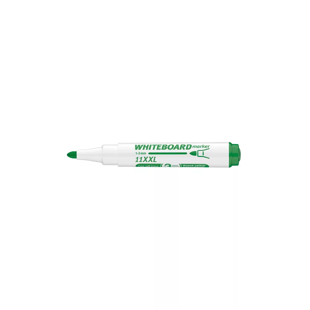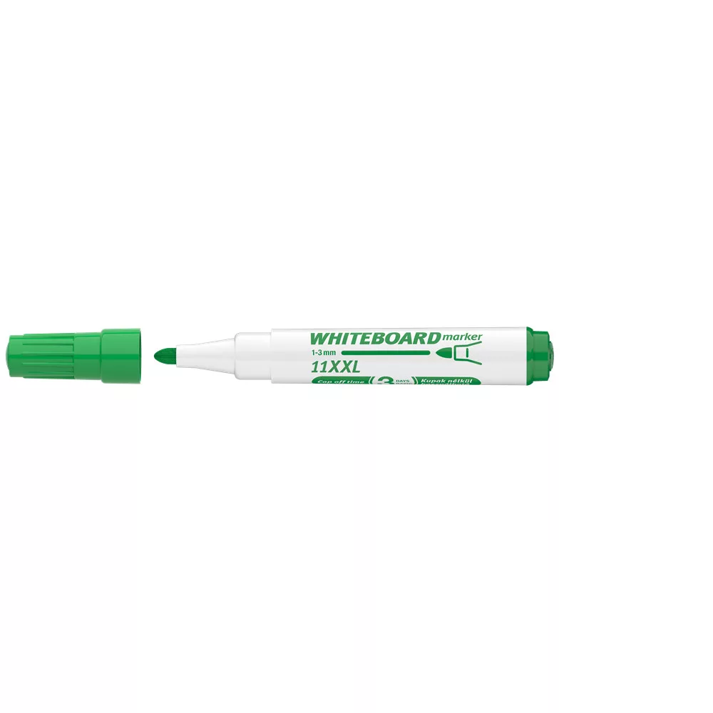 Fehér táblára való írásra, rajzolásra alkalmas marker."Cap-off" festékkel töltve, ezért néhány napig kupak nélkül sem szárad be. Az írás szárazon letörölhető. Megnövelt élettartam a nagyobb méretű testnek köszönhetően. Kerekített csúccsal .. Vonalvastagság: 3 mm. 10DB/DOBOZ Katalóguskód: 20193