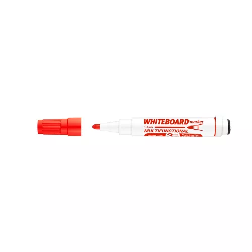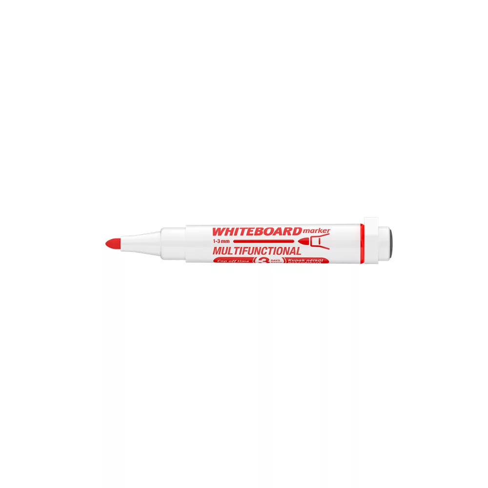 Multifunkciós táblamarker: - mágneses fehértáblára való írásra, rajzolásra. - speciális festékanyagának köszönhetően, néhány napig, kupak nélkül sem szárad be. -a kupakban elhelyezett mágnes révén, acél táblafelületeken rögzíthető. - az írás szárazon letörölhető, melyet a kupak végén található táblatörlő korong is segít. Kerekített csúccsal. Vonalvastagság: 3 mm. Katalóguskód: 19365