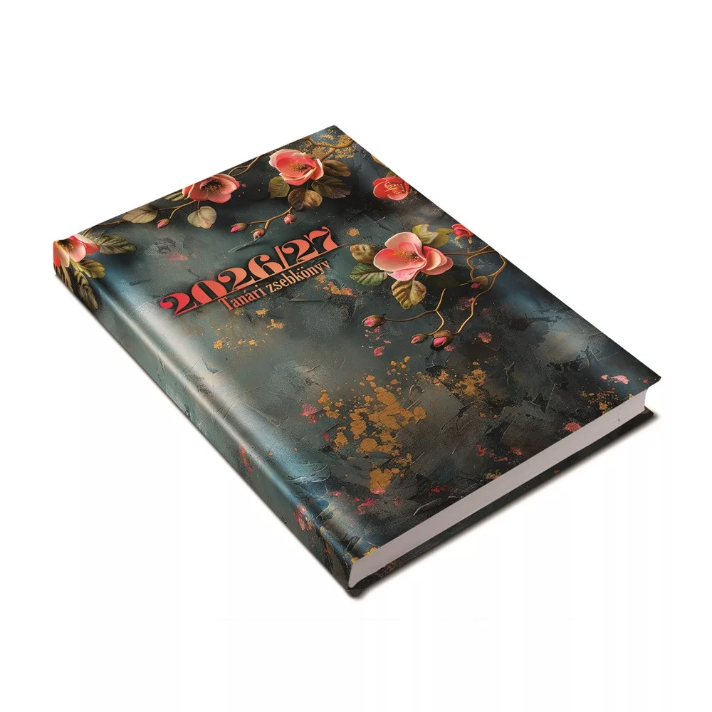 TANÁRI HATÁRIDŐNAPLÓ A5, MŰBŐR 150MMX210MM, FEHÉR LAPOKKAL VIRÁGMINTA 2026/2027 REALSYSTEM