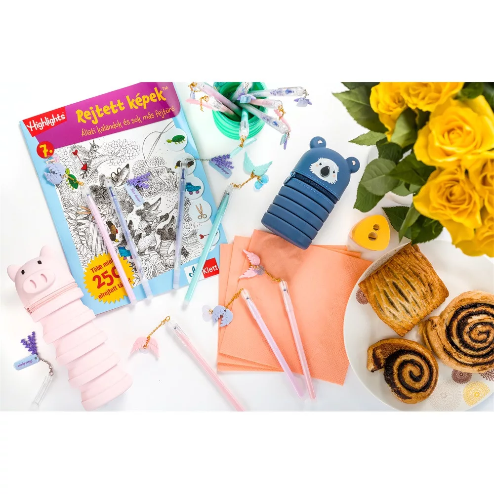 Harmonika tolltartó aranyos állat mintával, mely az asztalon nyitott állapotban tárolóként is működik. Minőségi puha és selymes tapintású szilikon alapanyaga könnyen tisztítható. Formájának köszönhetően remek játék és ajándék is egyben. Katalóguskód: 32235
