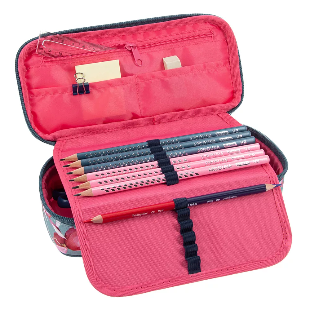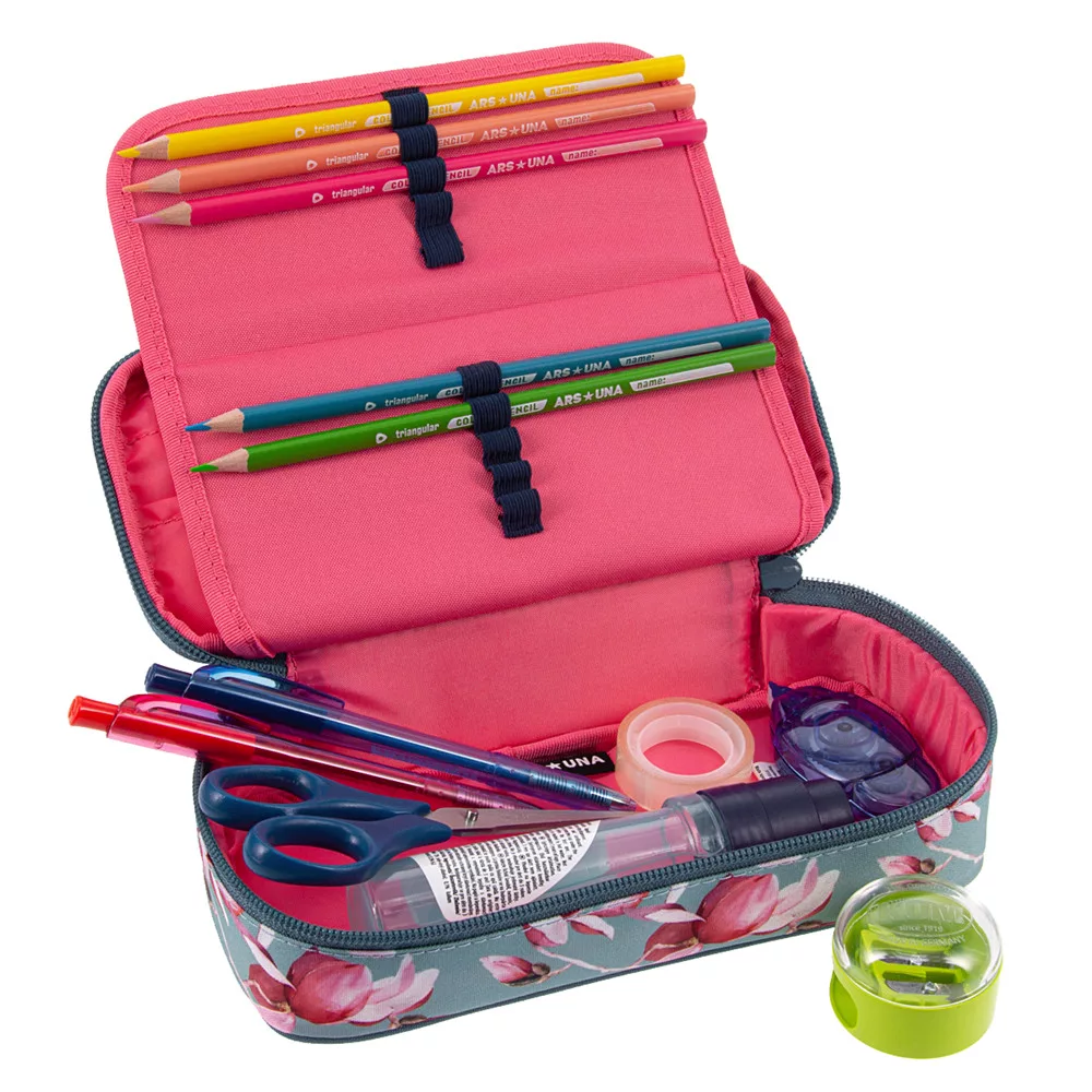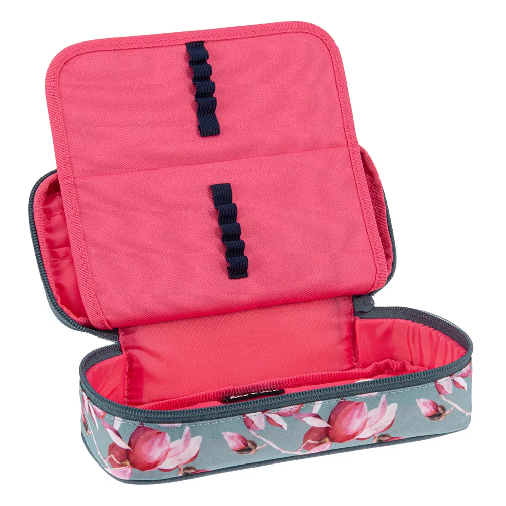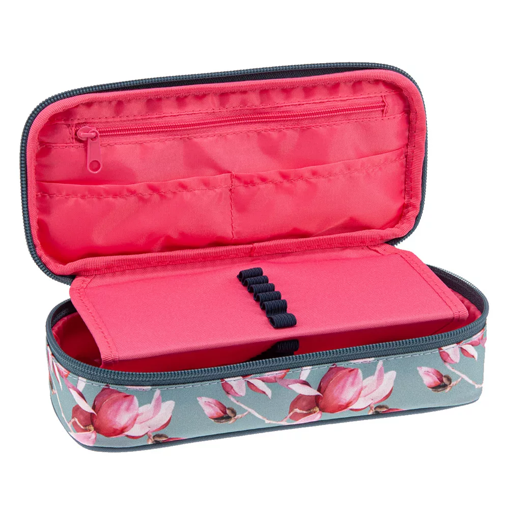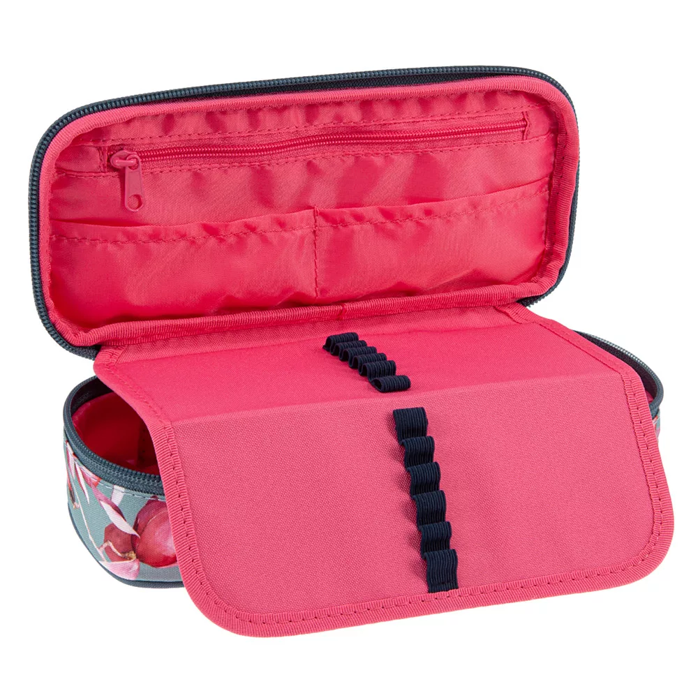 Cipzáros, egy rekeszes tolltartó tinédzsereknek. Belsejében egy cipzáros zsebbel és gumis kialakítással. Sok írószer tárolására alkalmas, könnyű tolltartó.