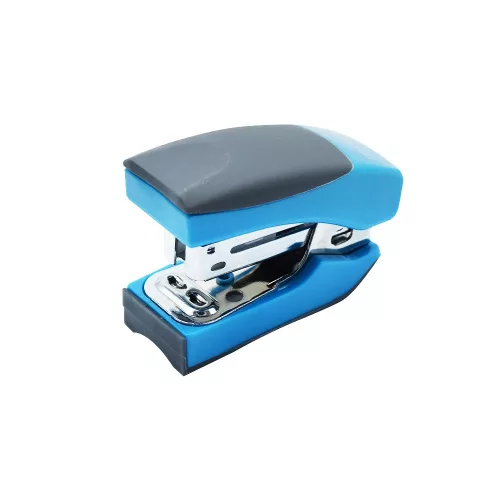 Kis méretű, fémszerkezetű tűzőgép, trendy világoskék színben. Műanyag takaróelemekkel, ergonomikus gumiborítású nyomófelülettel. Beépített kapocskiszedő. 24/6 és 26/6 tűzőkapcsokhoz. Lapkapacitás: 15 lap Tűzési mélység: 27 mm