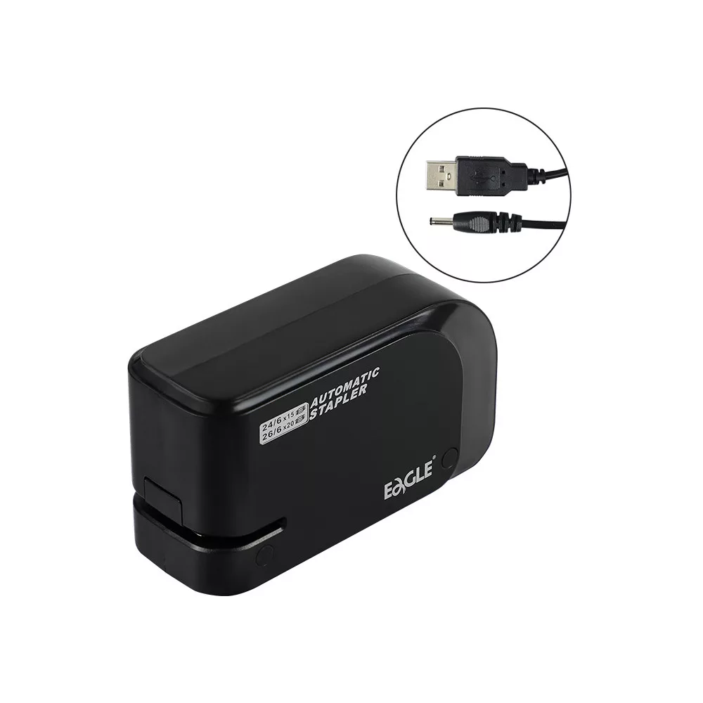 Elektromos tűzőgép, 20 lap, 24/6 és 26/6 kapoccsal, elemmel és USB-kábellel is működtethető, fekete – EAGLE EG-1610