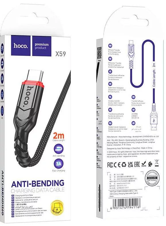 USB 2.0 Type-C/A töltőkábel 2.0 m Hoco X59
