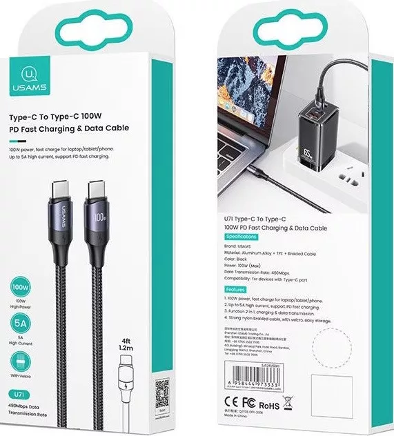 Jellemzők:① 100 W-os nagy teljesítmény: gyors töltés laptophoz, táblagéphez és telefonhoz② Töltés + adatátvitel: 2 az 1-ben funkció③ Erős fonott kábel: tépőzáras rögzítővel a könnyű tárolás érdekében.