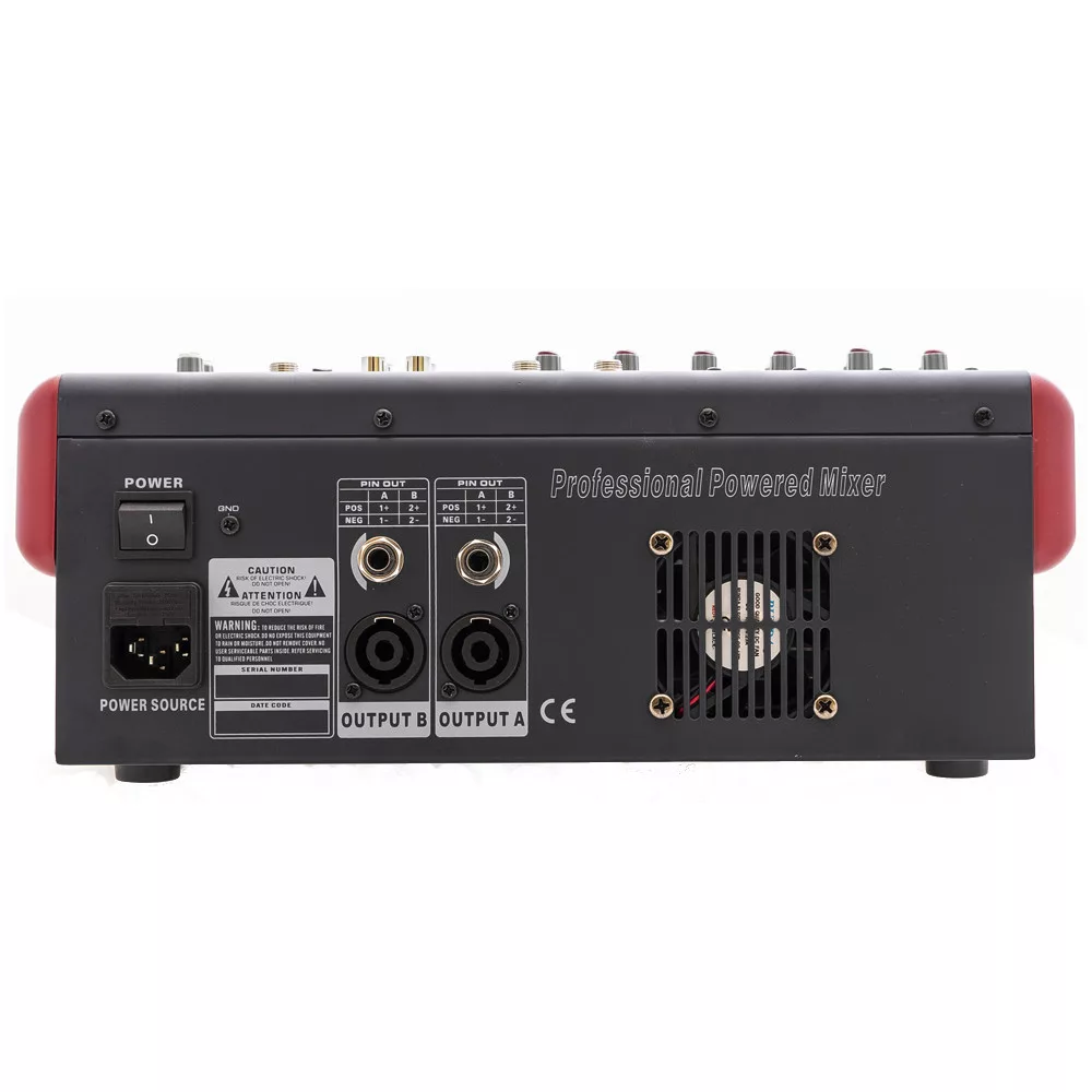 Ultra kis zajú 8 csatornás power mixerCsatornák száma: 4 Monó, 2+1 Sztereó és MP3 lejátszó csatorna