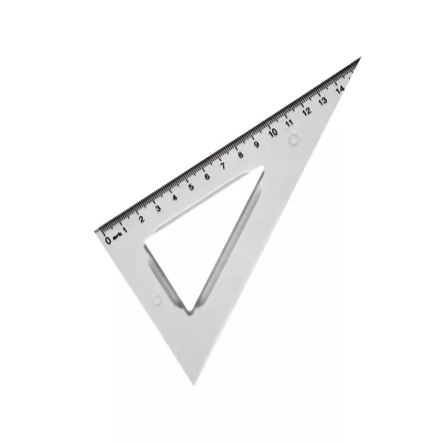 Átlátszó, víztiszta, műanyag, 90-45-45 fokos háromszög vonalzó, iskolai és irodai felhasználására. Mérési hosszúság: 15,5 cm