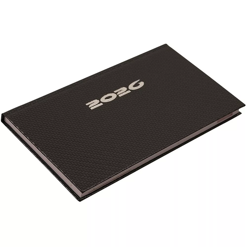 ZSEBNAPTÁR FEKVŐ CARBON, FEHÉR LAPOKKAL ACÉL REALSYSTEM 2026.