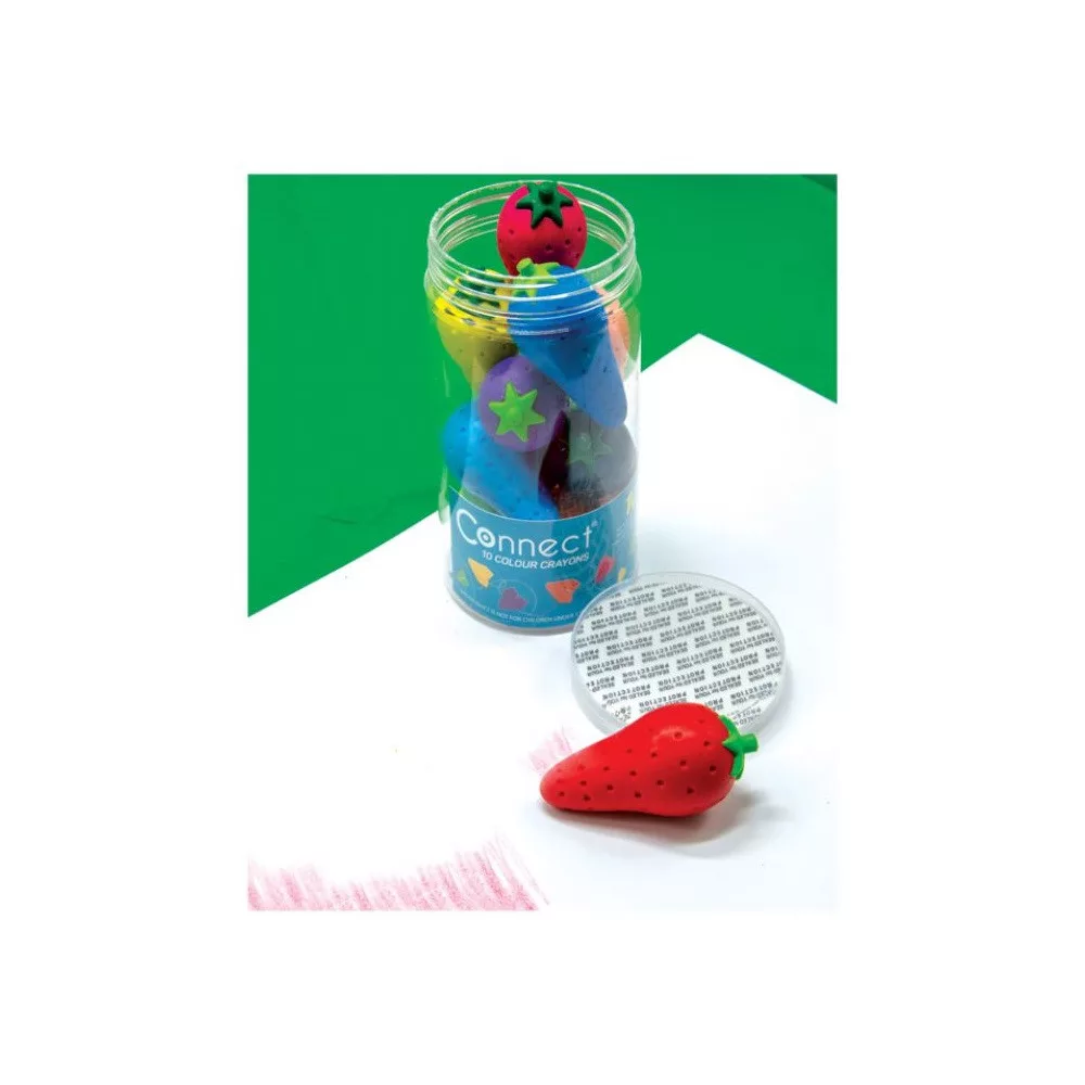Színes, 12 darabos viaszos zsírkréta készlet vidám eper formájú dizájnnal a Connect márkától. A készlet élénk, gazdag színeket tartalmaz, amelyek tökéletesek rajzoláshoz és kreatív alkotáshoz óvodában, iskolában vagy otthoni kézműves tevékenységekhez. Ergonomikus, könnyen fogható formájának köszönhetően már a kisebb gyerekek is kényelmesen használhatják. Praktikus csomagolásban ideális ajándék vagy kreatív eszköz minden gyermek számára. Katalóguskód: 66084