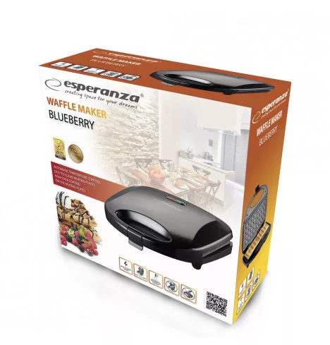 Esperanza EKT008 BLUEBERRY gofrisütő tapadásmentes felülettel bevont lemezekkel, egyszerűen csak papírral tisztítható