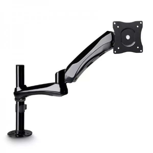 Gravity SA 6131 B – monitortartó, asztalra szerelhető, lengő karral, feketeAz SA 6131 B elegáns acél és alumínium öntvény konstrukciójú monitor képernyő tartó kar. Minden irányban állítható, zseniális ellensúly kialakítással rendelkezik a könnyű magasságállítás érdekében. A belső kábel elvezetés letisztult megoldást biztosít. A monitortartó furatokkal, vagy szorító kengyellel (mellékelve) biztonságosan rögzíthető.Termék típusa: képernyő tartóAnyag: alumínium, acélSzín: feketeRögzítési lehetőségek: csavaros talp, szorító kengyelAlkalmazható képernyő méret: 13”-27”Képernyők száma: 1Képernyő súlya min.: 2 kgKépernyő súlya max.: 9 kgÍvelt képernyő: alkalmazhatóVesa szabvány: 75x75 mm, 100x100 mmDőlésszög: -90°/+90°Lengési szög: 180°Forgatási szög: 360°