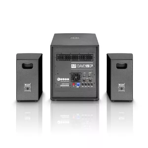 A DAVE 15 G3 az LD Systems legnagyobb teljesítményű aktív kompakt rendszere. A 15”-os basszusreflex rendszerű mélynyomó biztosítja a masszív, erőteljes alapot. A 8”-os hangszórókkal és magassugárzókkal rendelkező szatellitek természetes hangzást nyújtanak határozott közepekkel és áttetsző magasakkal. A háromutas erősítő a mélynyomóba lett beépítve, 1×400 W és 2×150 W folyamatos teljesítménnyel táplálja a hangszórókat.