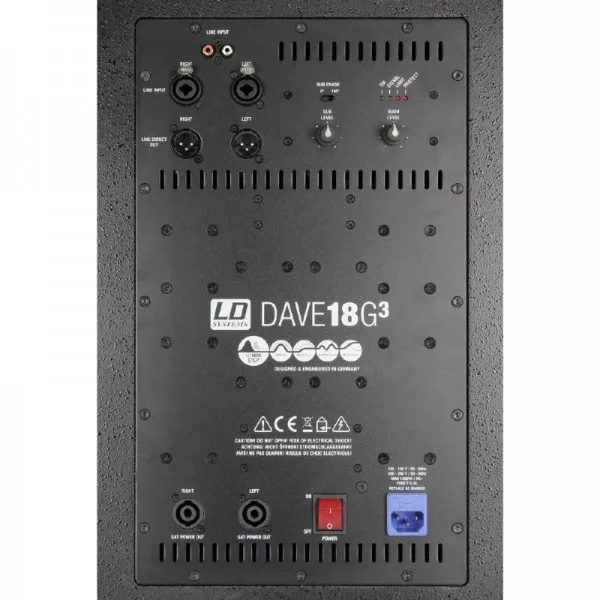 A digitális jelfeldolgozás, többsávos limiter, rövidzárlat és túláram elleni védőáramkörök biztosítják a megbízható működést és kiváló hangzást. A DAVE 18 G3 mélynyomó XLR, 6,3-as jack és RCA bemenetekkel rendelkezik, így a hangforrások széles körét képes kiszolgálni. A rendszer és a mélynyomó hangereje különállóan szabályozható, fázisfordító is rendelkezésre áll, a szatelliteket pedig Speakon kompatibilis csatlakozókkal lehet bekötni.