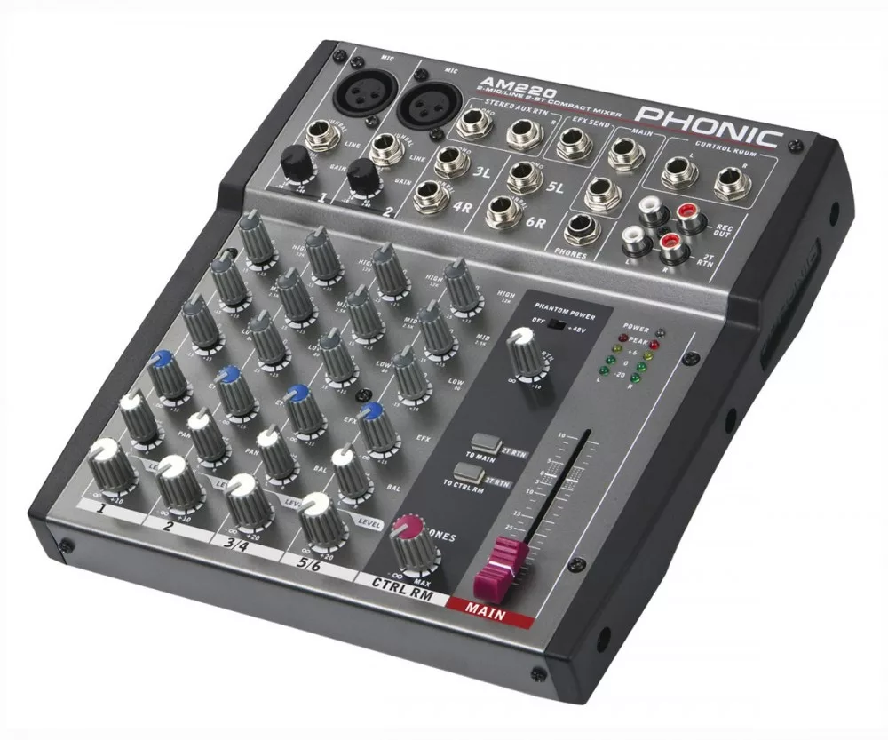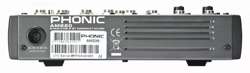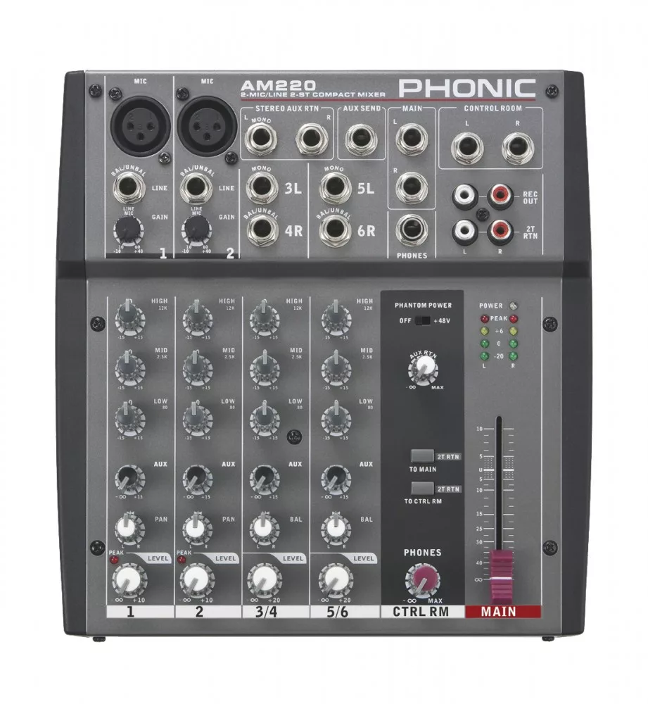 Csatornák száma: 4 (2 mikrofon, 2 sztereó)2T be- és kimenetCTRL Room kimenetFejhallgató kimenetEFX Send kimenet (Aux)2 x 4 LED-es kivezérlésmérő+48V Phantom táp