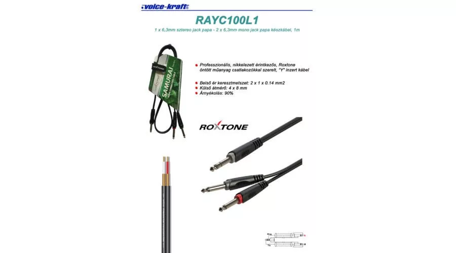 RAYC100L1 6,3 Sztereó Jack - 2x6,3Monó Jack kábel, 1m
