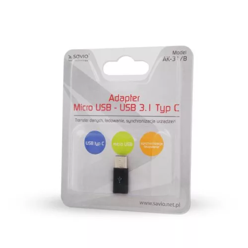 Savio AK-31/B átalakító micro USB - USB TYPE C fekete